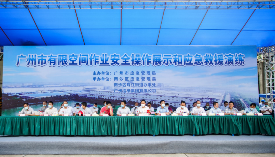 在公司领导的高度重视下,通过新产品分厂、办公室、人力资源部、采购部、生产部、物流管理部、园区发展部等部门的积极配合,广州市有限空间作业安全操作展示和应急救援演练于8月26日在公司成功举办。市应急管理局党委书记、局长黄彪、南沙区常务副区长谢明、完美真人集团副总经理谭思马和公司党委书记、董事长周耘出席了本次活动,各区应急管理局和珠江街主要负责人、市有限空间作业重点企业代表、完美真人集团安监部和各板块安全责任人及公司AB类部门共160余人现场观摩演练。